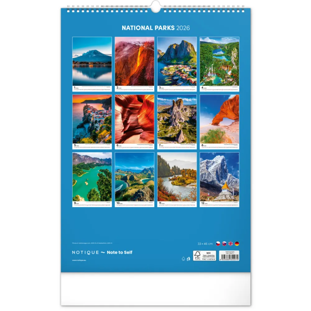 Detailní popis: NOTIQUE Nástěnný kalendář Národní parky světa 2026, 33 x 46 cm