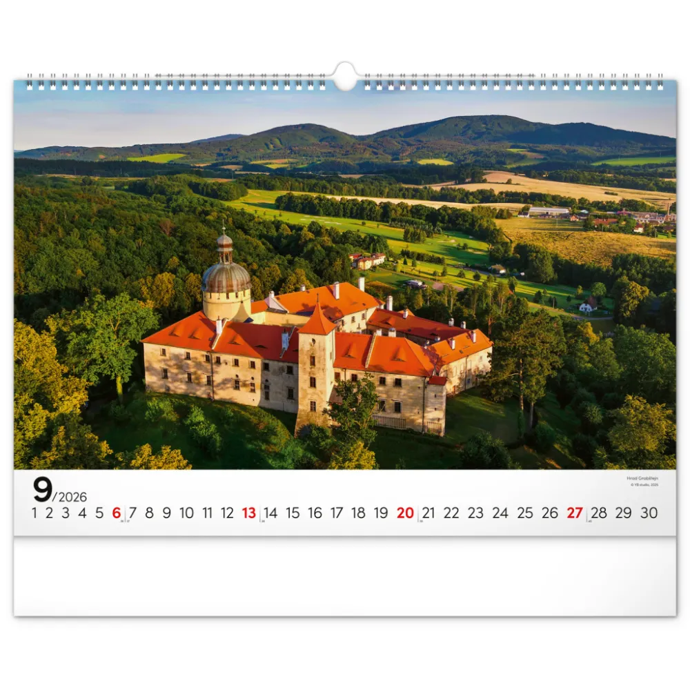Velkoformátový kalendář obsahuje panoramatické fotografie krás a památek České republiky, které budete chtít navštívit. Vydejte se s námi na Grabštejn, Fulnek, Konopiště i do Jindřichova Hradce. Kalendář zahrnuje jednoduché kalendárium a vznikl ve spolupráci s YB studiem, které se specializuje na focení měst a krajiny.