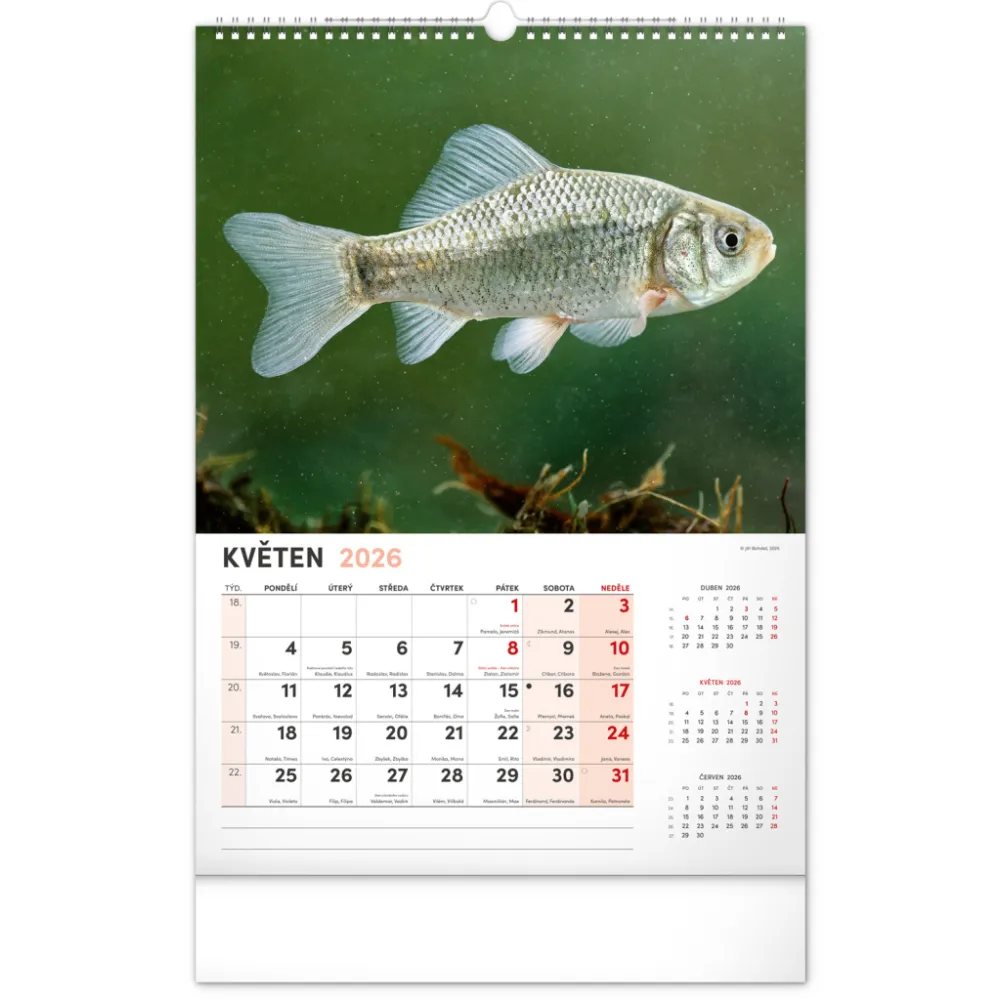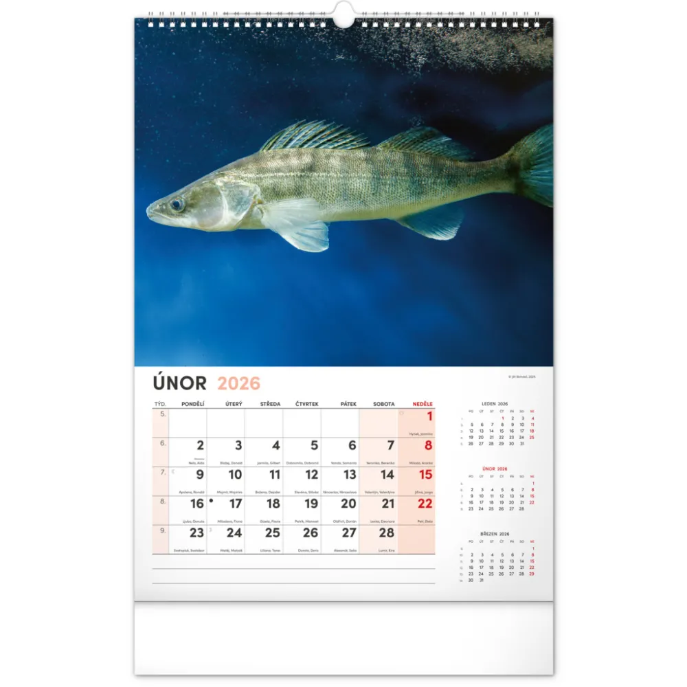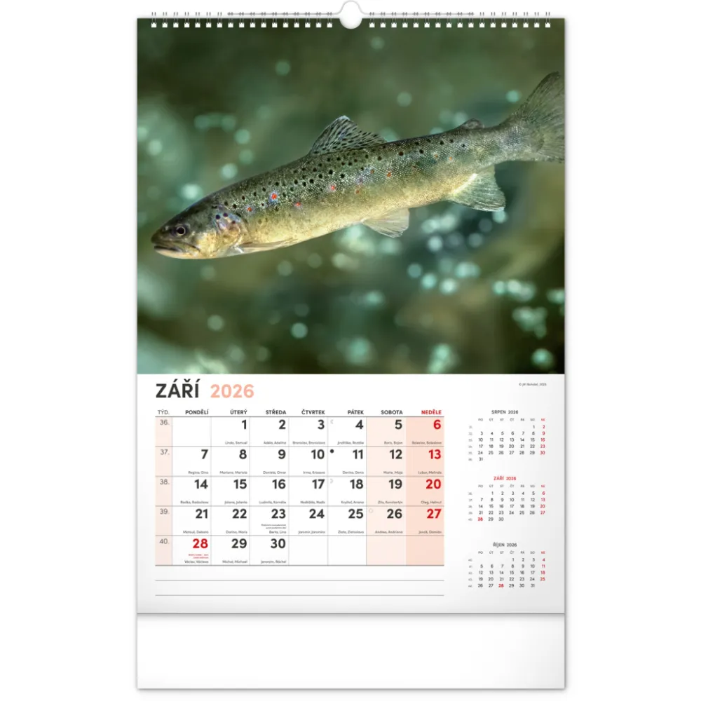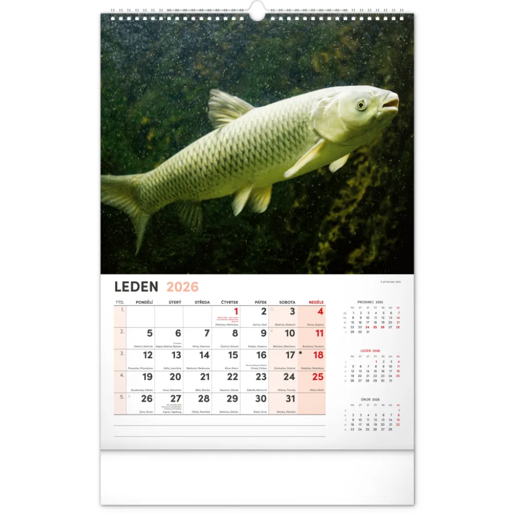Dvanáct fotografií z vodního světa v tomto nástěnném kalendáři zachycují ty nejskvostnější úlovky. Rozšířené kalendárium obsahuje česká jména, svátky a památné dny, tříměsíční přehled na každé straně a prostor pro poznámky. Nadchne všechny vášnivé rybáře a milovníky vodních ploch.