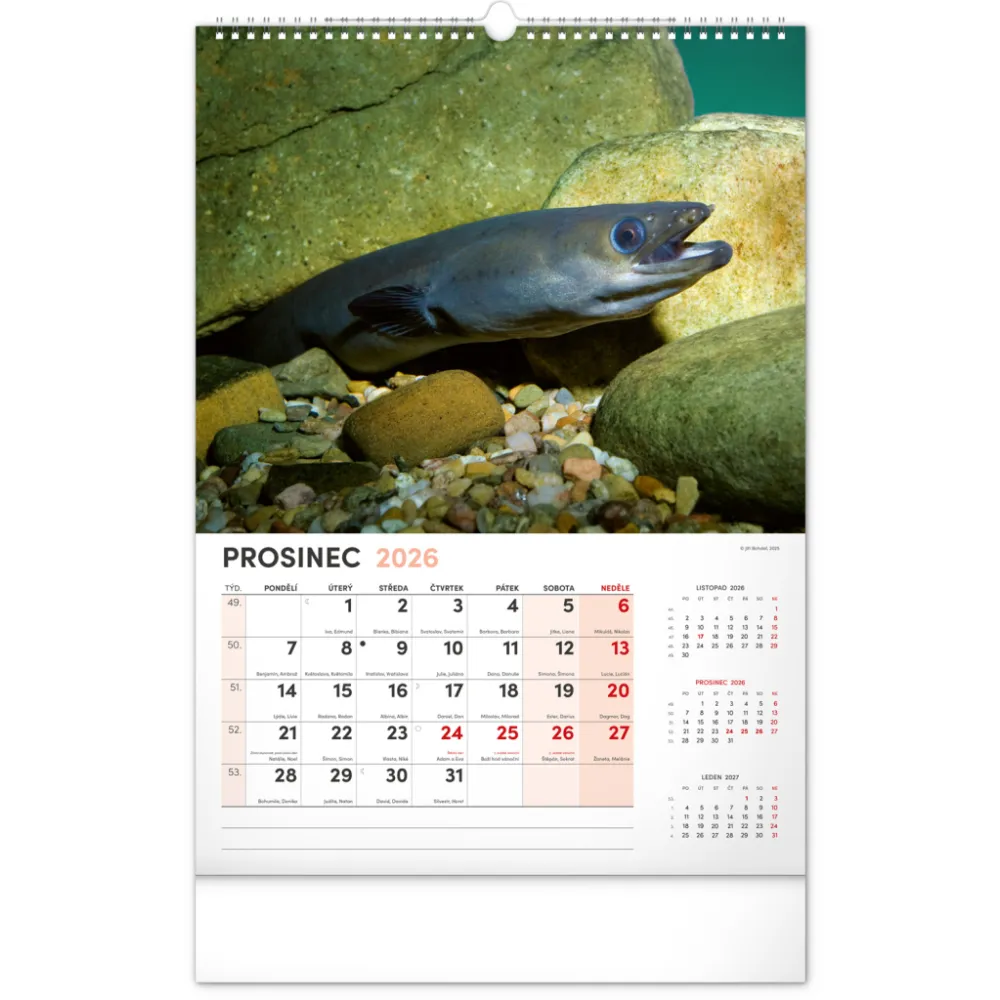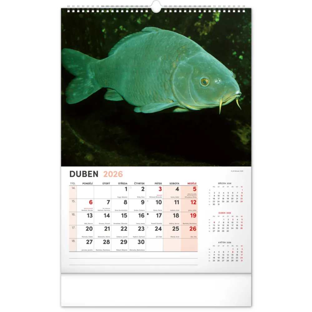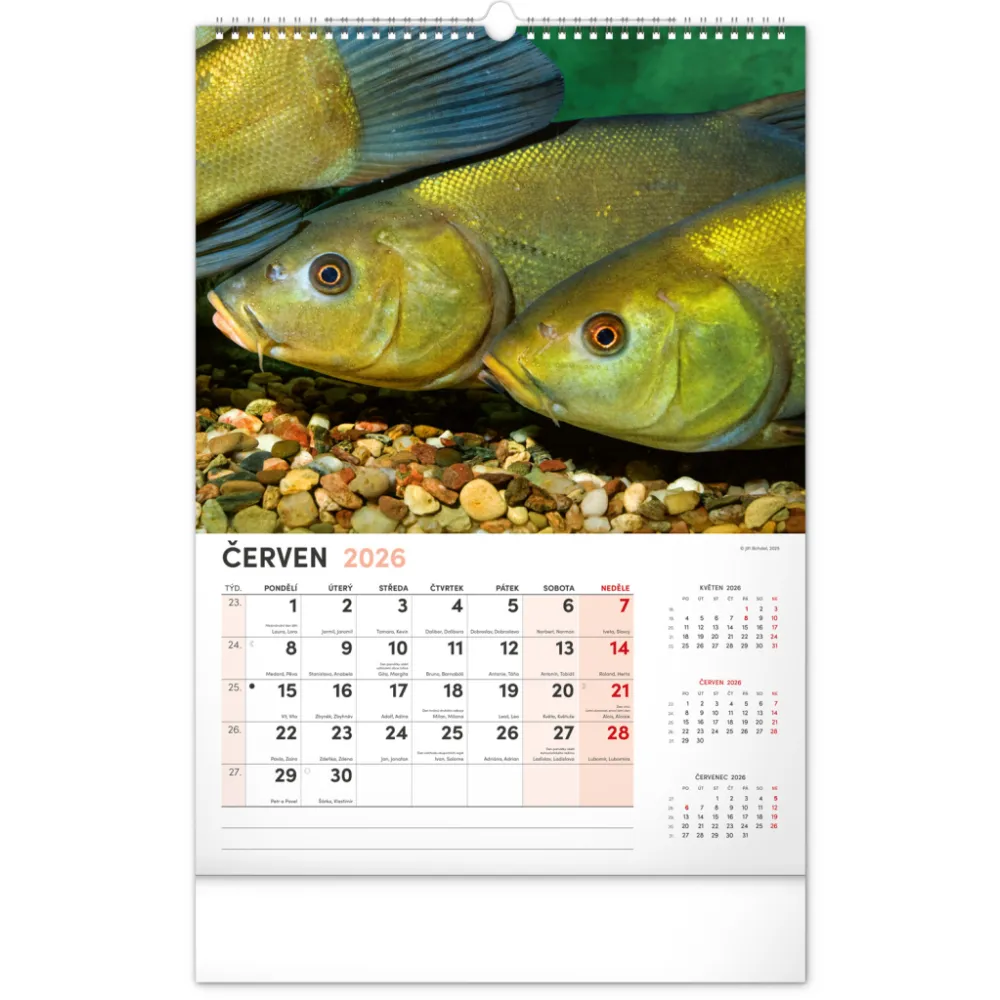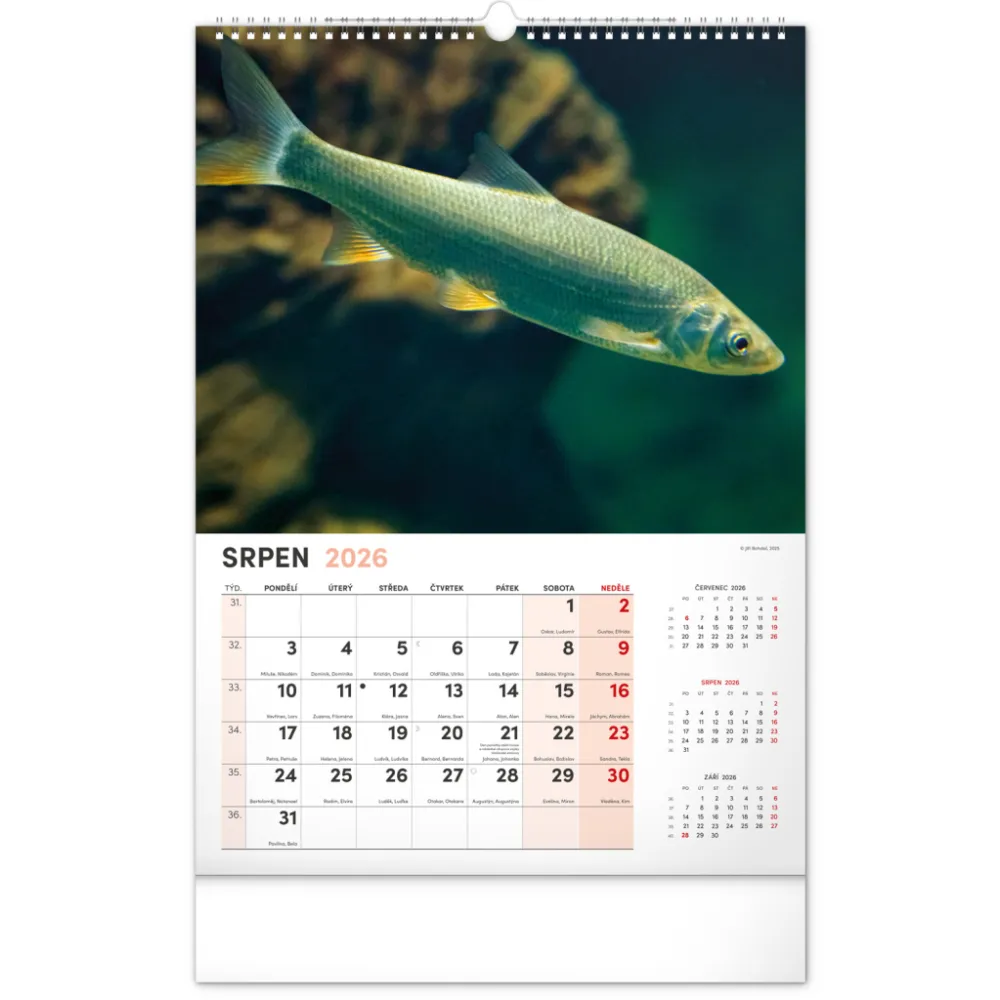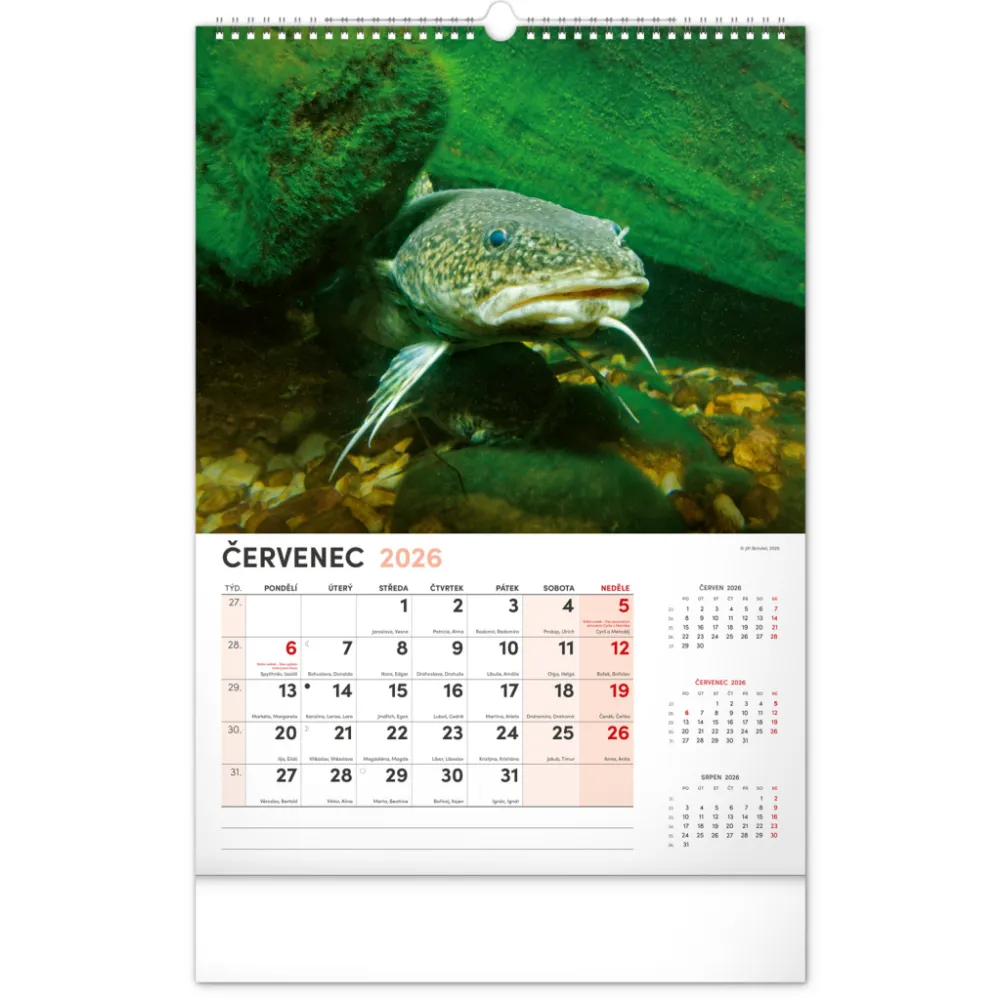 Dvanáct fotografií z vodního světa v tomto nástěnném kalendáři zachycují ty nejskvostnější úlovky. Rozšířené kalendárium obsahuje česká jména, svátky a památné dny, tříměsíční přehled na každé straně a prostor pro poznámky. Nadchne všechny vášnivé rybáře a milovníky vodních ploch.