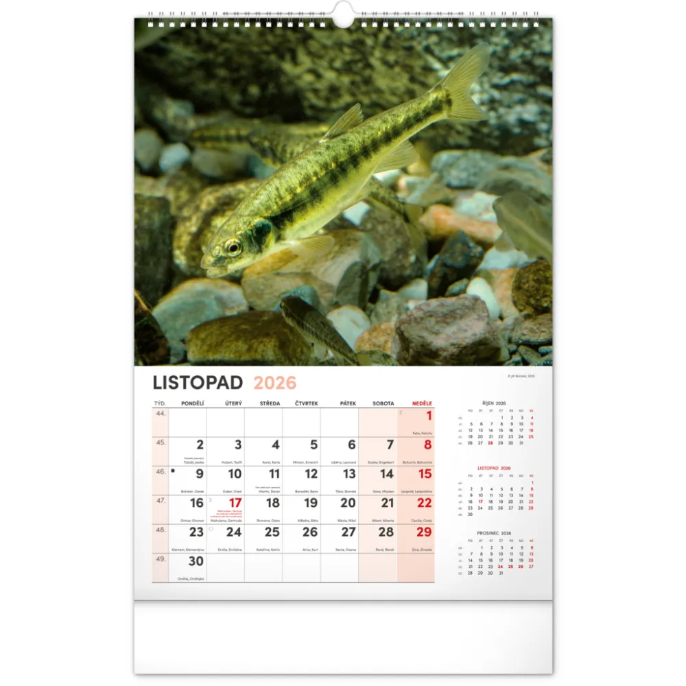 NOTIQUE Nástěnný kalendář Rybářský 2026, 33 x 46 cm