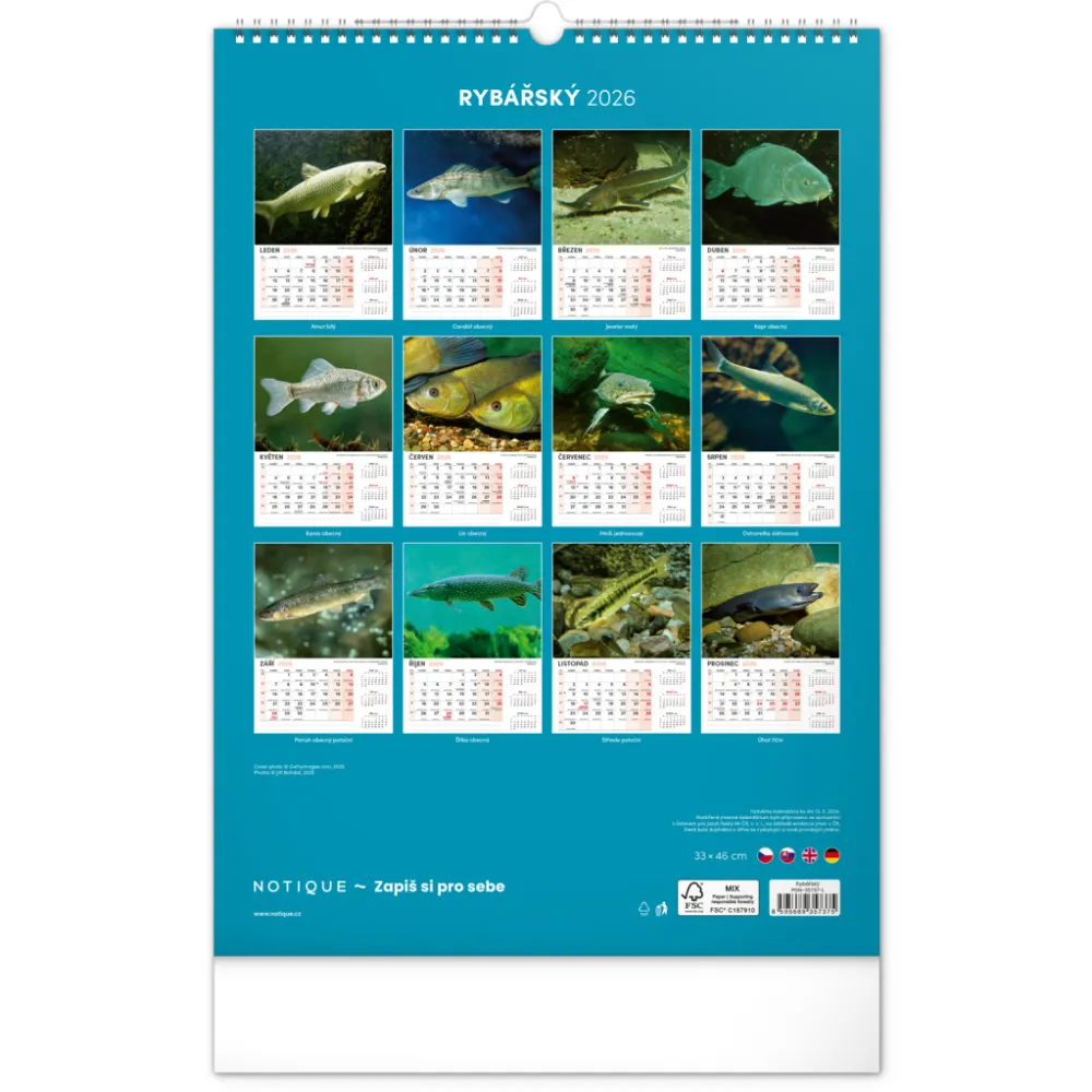 Detailní popis: NOTIQUE Nástěnný kalendář Rybářský 2026, 33 x 46 cm