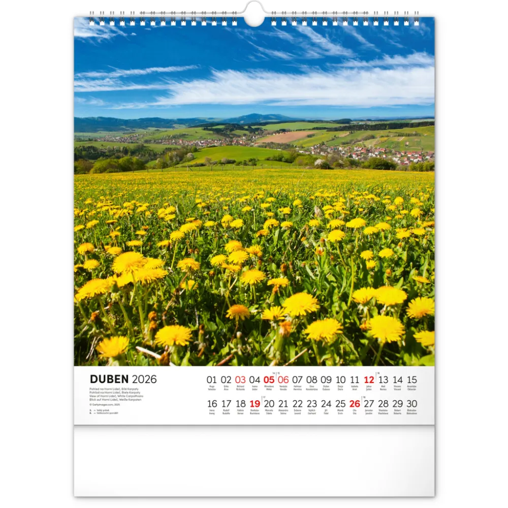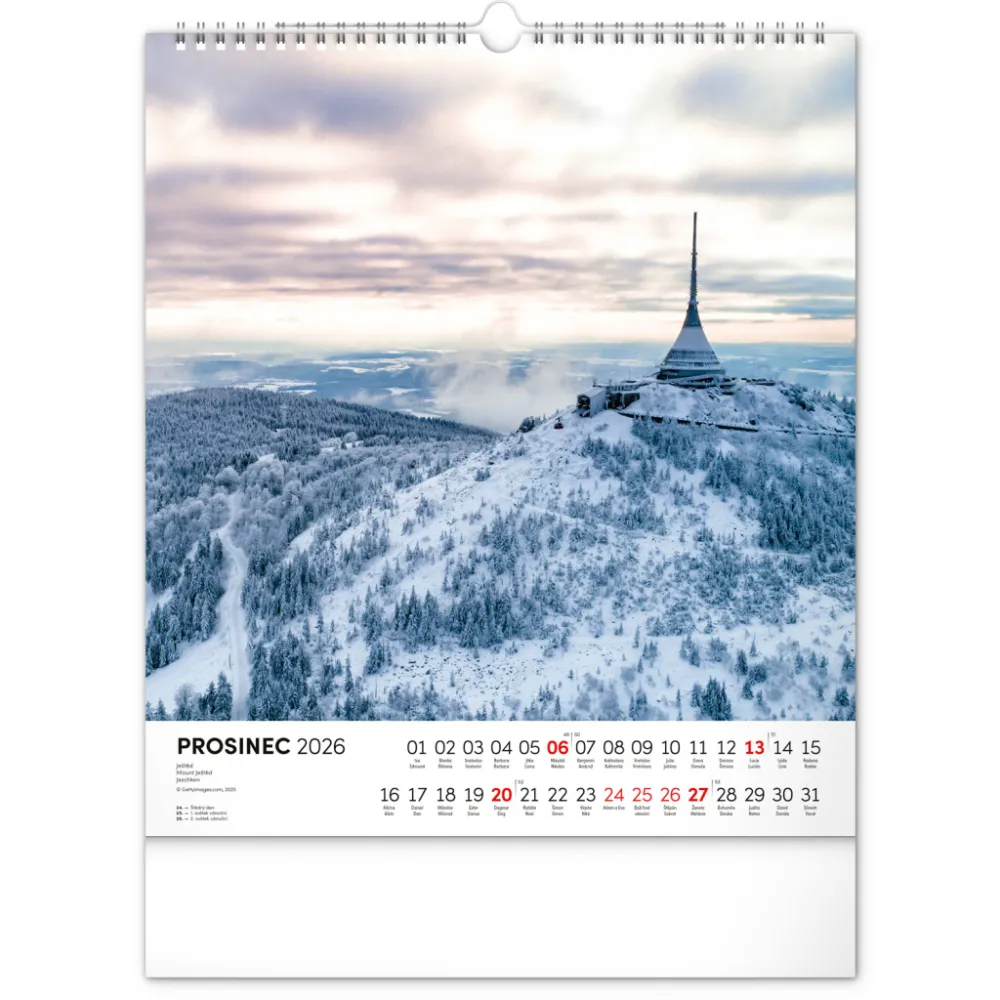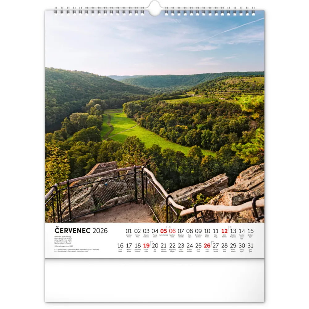 NOTIQUE Nástěnný kalendář Toulky českou krajinou 2026, 30 x 34 cm. Zatoulejte se s námi na krásná místa České republiky. Dvanáct přírodních zákoutí z celé České republiky, jednoduché kalendárium s českými jmény a praktický formát vhodný do každého interiéru.