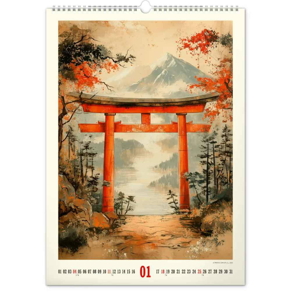 NOTIQUE Nástěnný kalendář Vintage plakáty – japonské umění 2026, 33 x 46 cm. Nástěnný kalendář s pečlivě vybranými klasickými plakáty s motivy japonské kultury. Propracované detaily a živé barvy lze obdivovat na velkém formátu kalendáře s vysokou gramáží papíru.