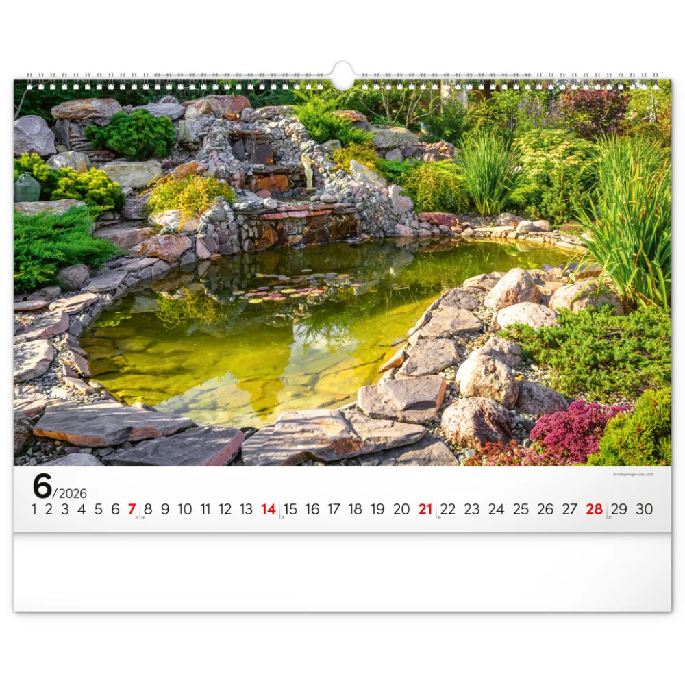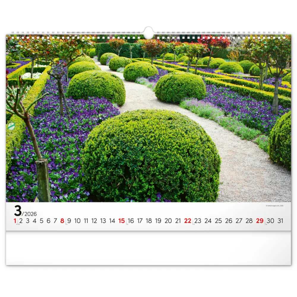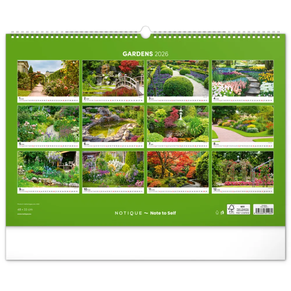 NOTIQUE Nástěnný kalendář Zahrady 2026, 48 x 33 cm