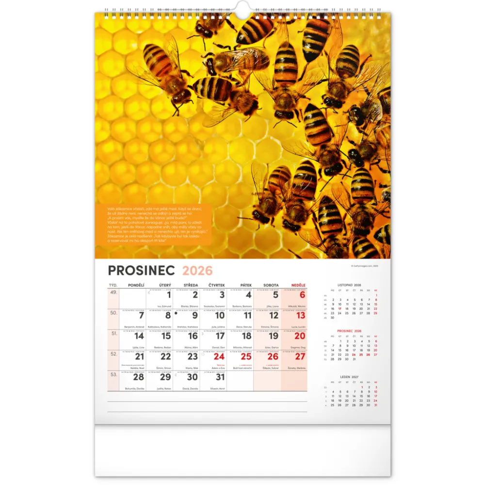 NOTIQUE Nástěnný Včelařský kalendář 2026, 33 x 46 cm