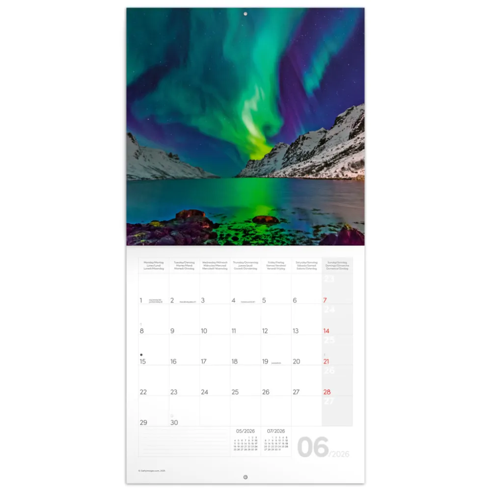 Detailní popis: NOTIQUE Poznámkový kalendář Polární záře 2026, 30 x 30 cm