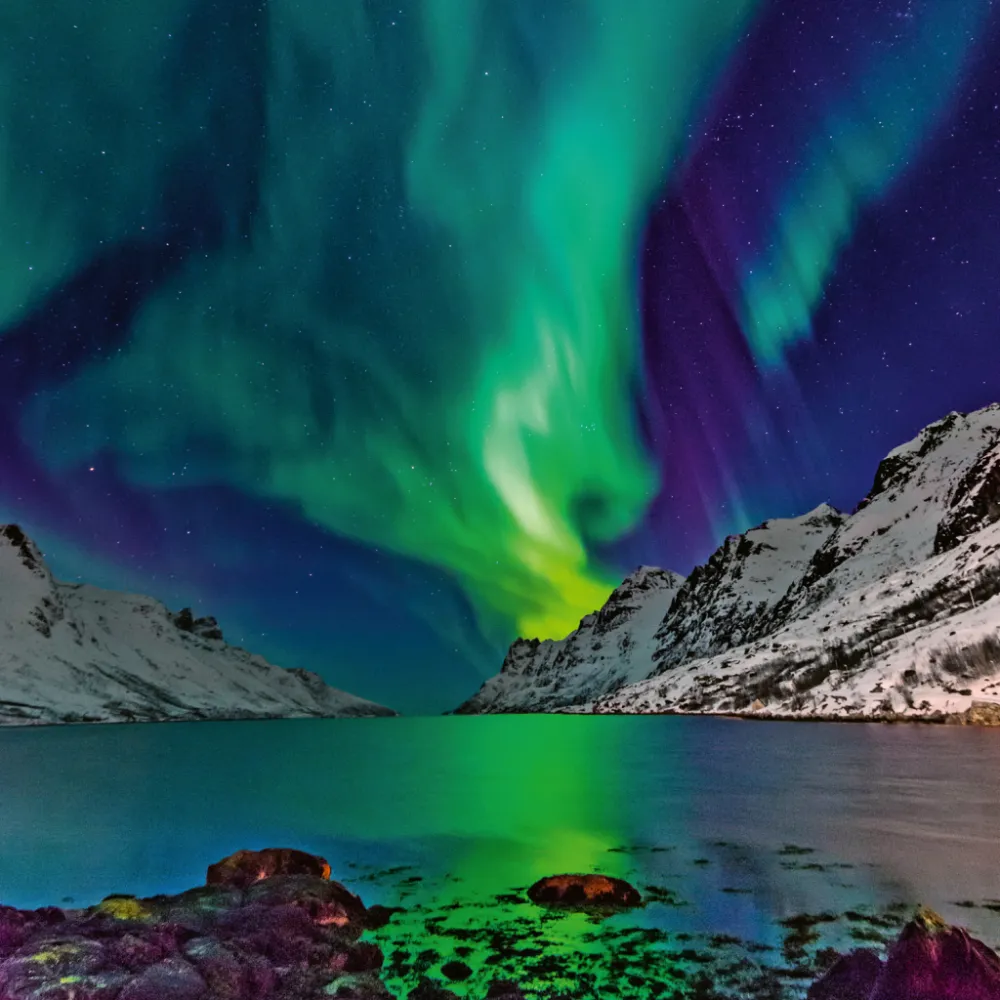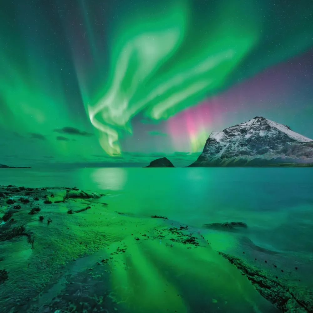 Poznámkový kalendář s dvanácti fotografiemi, na kterých se podařilo dokonale zachytit tak vzácný jev, jako je polární záře. Uvnitř najdete přehledné kalendárium od září 2024 do prosince 2025 v šesti jazycích, měsíční fáze, důležité svátky a prostor pro poznámky na každý den.