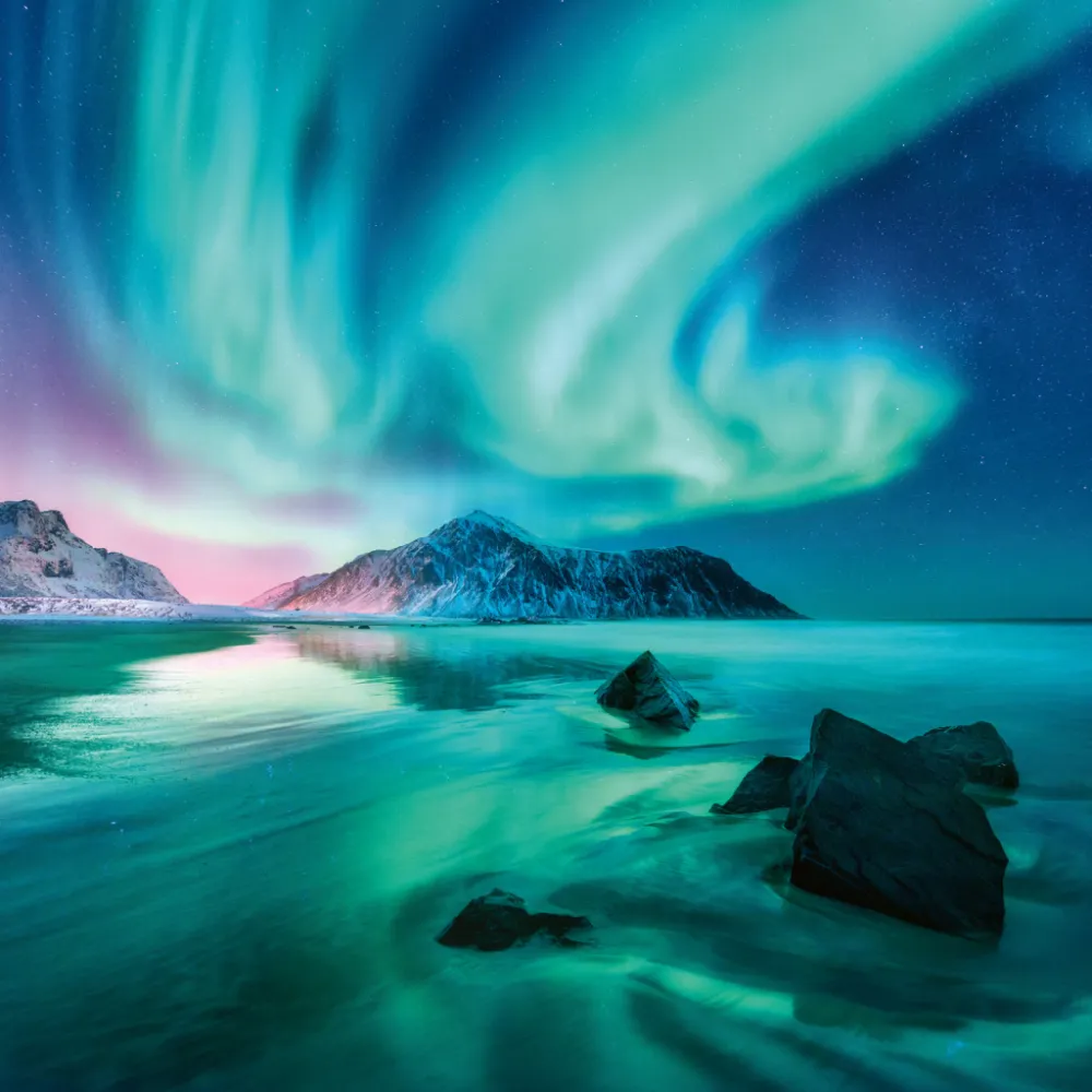NOTIQUE Poznámkový kalendář Polární záře 2026, 30 x 30 cm