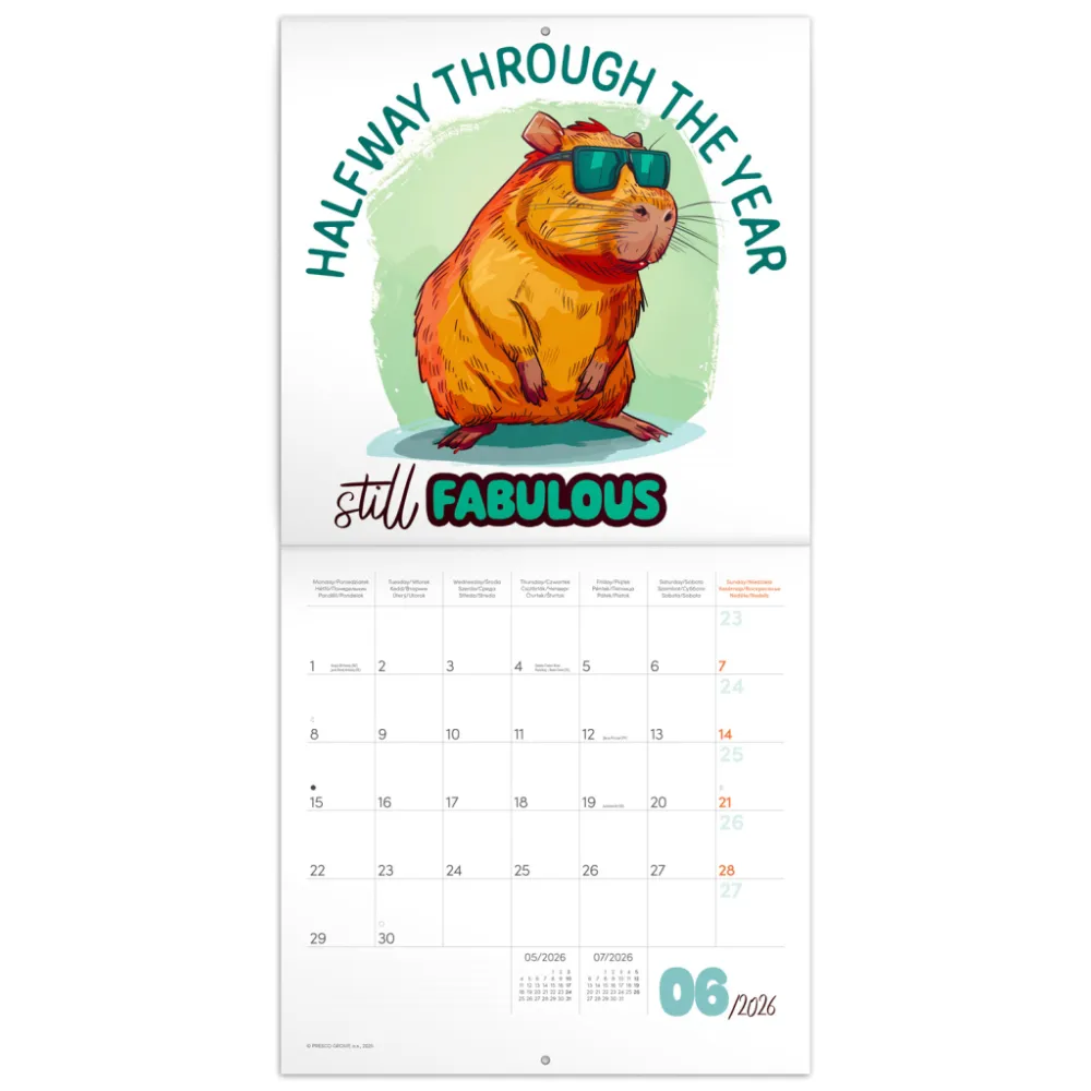Detailní popis: NOTIQUE Poznámkový kalendář Rozverné kapybary 2026, 30 x 30 cm