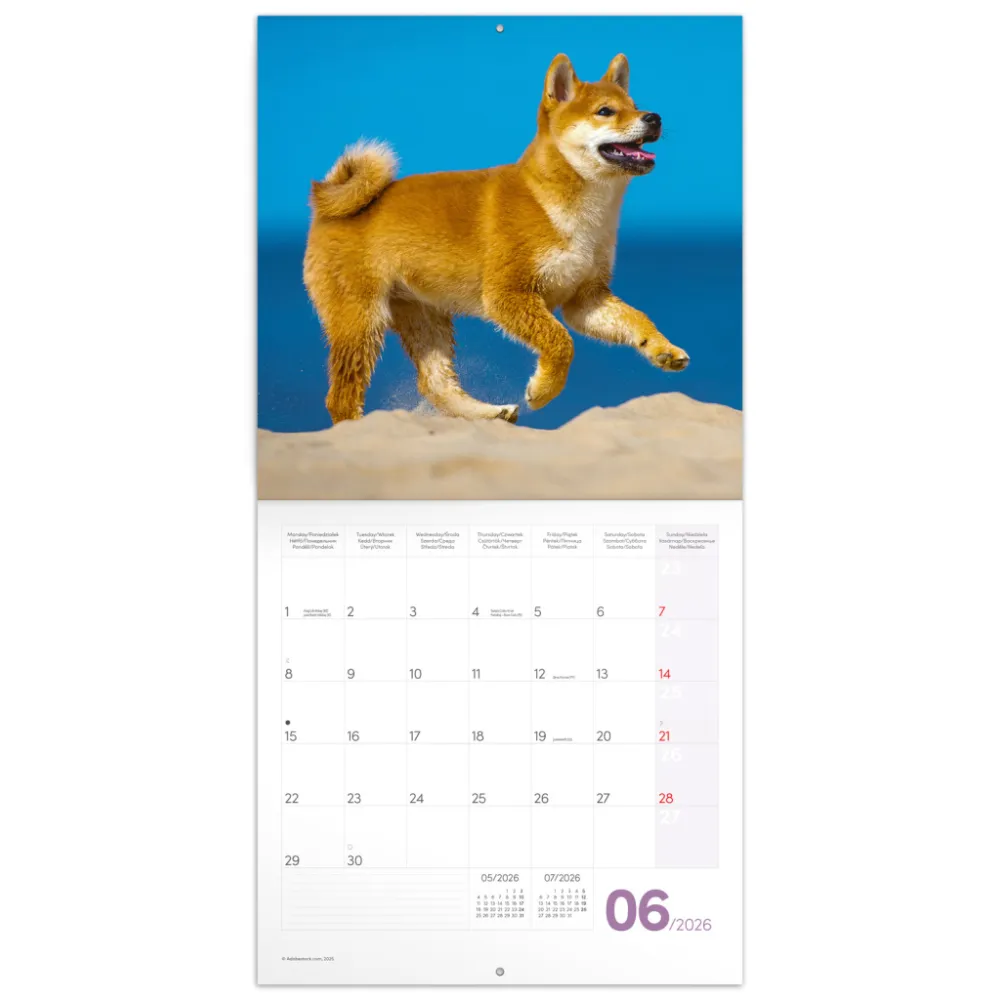NOTIQUE Poznámkový kalendář Štěňata 2026, 30 x 30 cm. Roztomilá štěňátka na fotografiích v poznámkovém kalendáři. Uvnitř najdete přehledné kalendárium od září 2025 do prosince 2026 v šesti jazycích, měsíční fáze, důležité svátky a prostor pro poznámky na každý den.