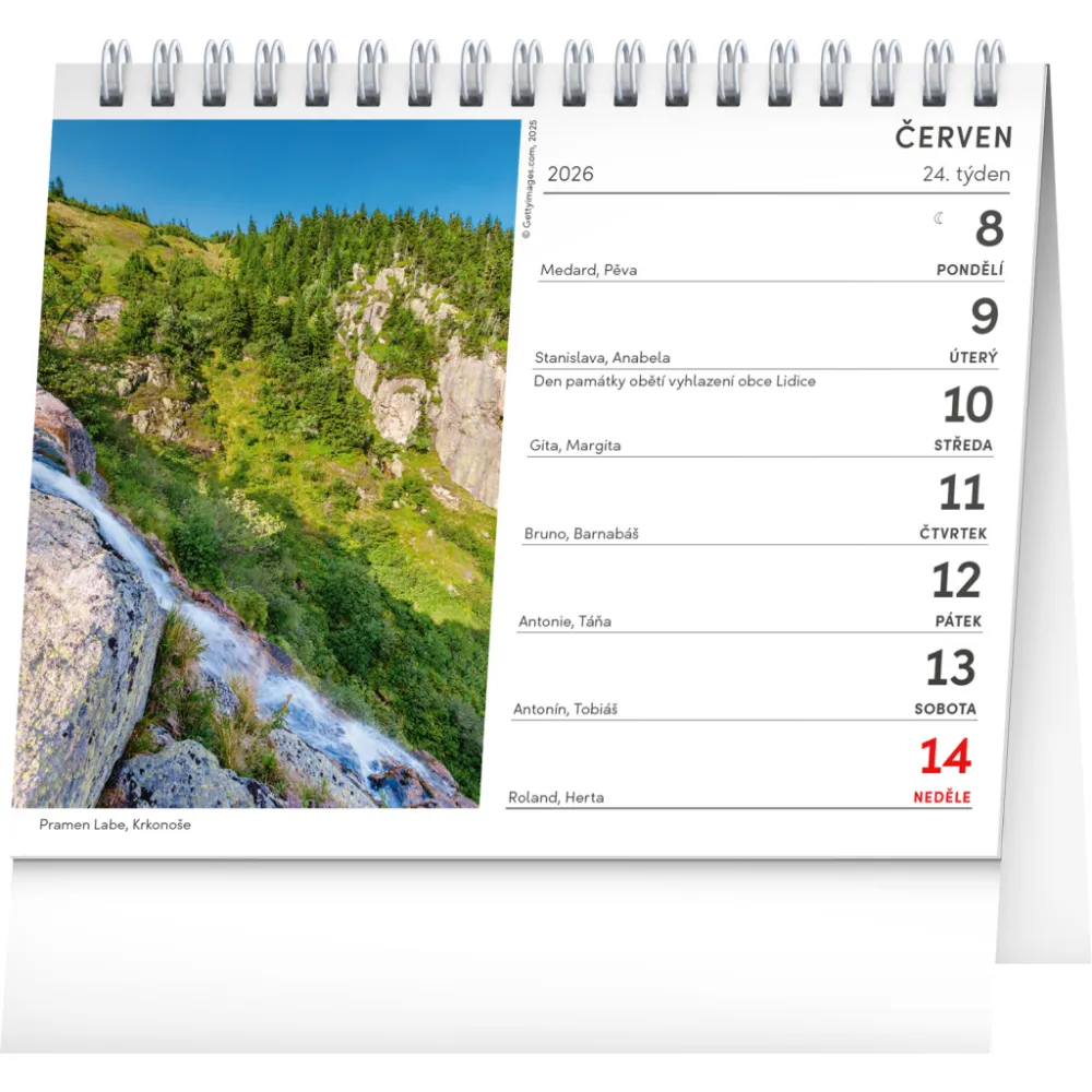 Detailní popis: NOTIQUE Stolní kalendář České hory 2026, 16,5 x 13 cm