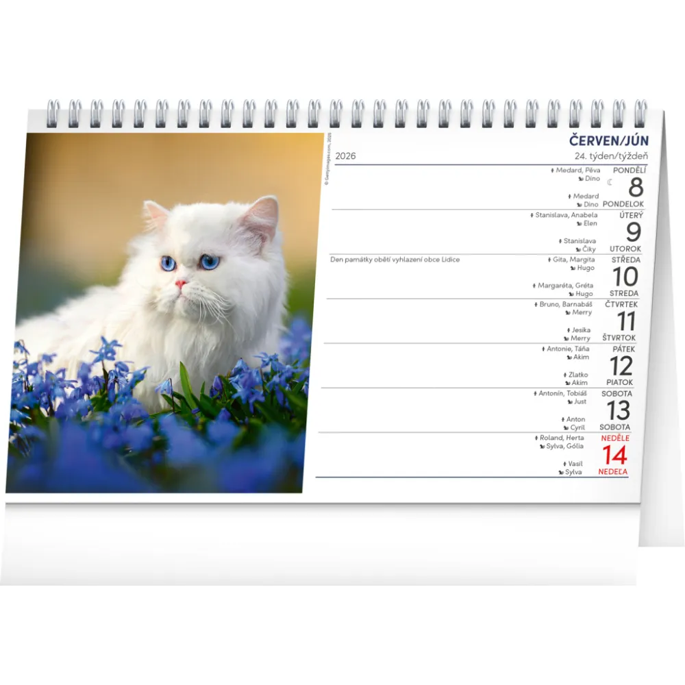 NOTIQUE Stolní kalendář Kočky – Mačky CZ/SK 2026, 23,1 x 14,5 cm