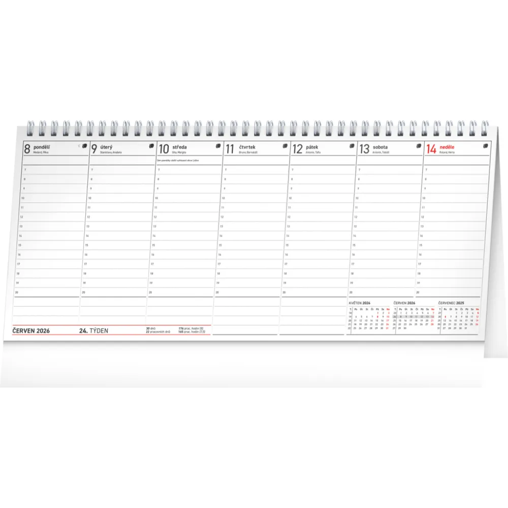 NOTIQUE Stolní kalendář Manažerský daňový 2026, 33 x 14,5 cm. Stolní kalendář se sloupcovým kalendáriem obsahuje všechny termíny daňových povinností, česká jména, svátky a památné dny a tříměsíční přehled u každého týdne. S tímto kalendářem již nezapomenete na žádnou svou schůzku či jednání, a ještě ...