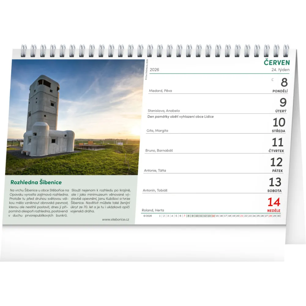 Také se vám stává, že nevíte, kam o víkendu vyrazit na výlet? V našem kalendáři naleznete 53 tipů pro všechny, kteří rádi podniknou výlet s celou rodinou. Stačí si jen vybrat cíl vaší příští cesty. Stolní kalendář s českým kalendáriem obsahuje svátky a památné dny, měsíční fáze a přehled na celý rok 2026 a 2027.
