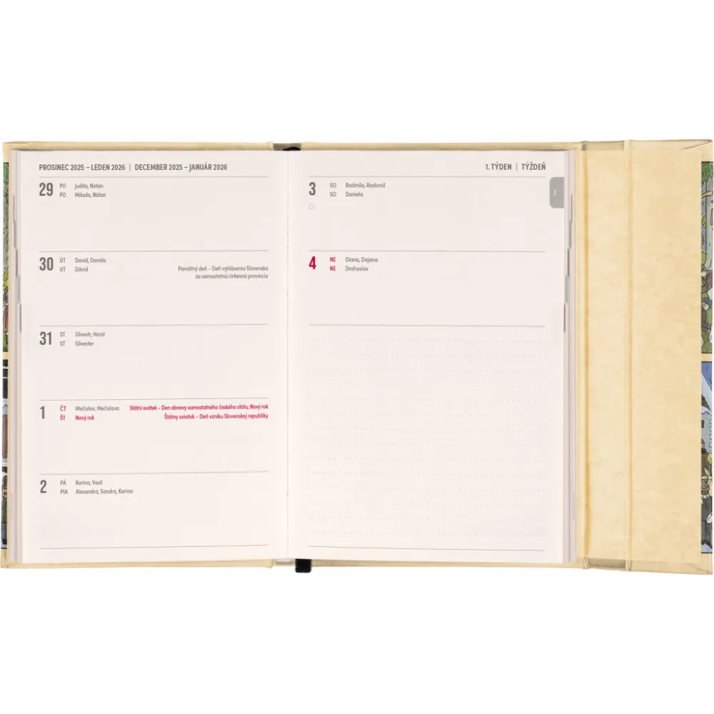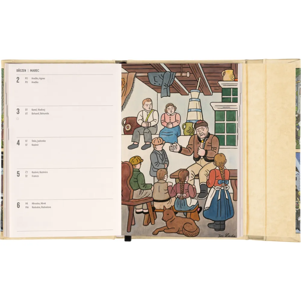 NOTIQUE Týdenní magnetický diář Josef Lada 2026, 11 x 16 cm. Týdenní diář s praktickým magnetickým uzavíráním je ideální volbou pro ty, kteří chtějí mít své plány přehledně pod kontrolou. Horizontální rozložení s českým a slovenským kalendáriem ve verzi týden na dvou stranách s prostorem pro poznámky. ...
