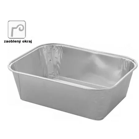 Alu miska hranatá se zaobleným okrajem, rozměry: 20,3 x 13,5 x 4cm.