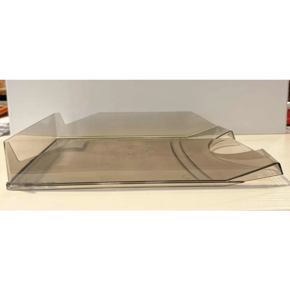 Odkladač plastový Victoria, transparentní kouřový. Určené pro odkládání dokumentů A4. Odolný plastový materiál. Odkladače jsou stohovatelné ve 4 polohách. Venkovní rozměr odkladače 255x340mm. Cena za 1 kus.