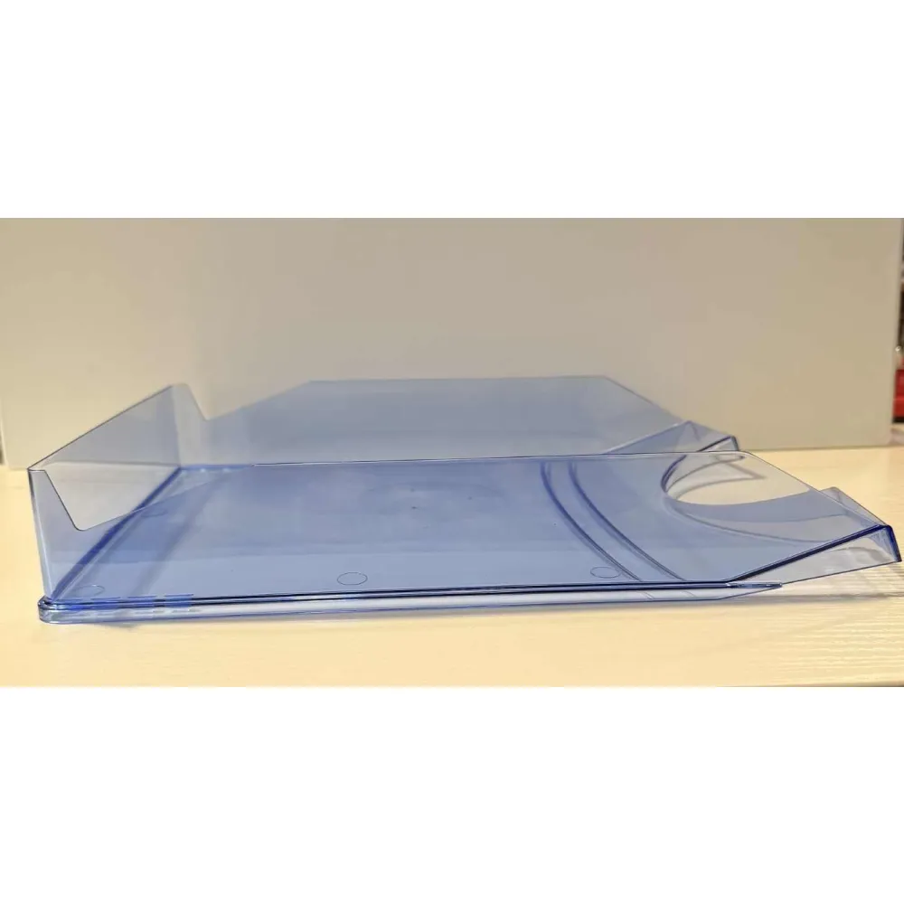 Odkladač plastový Victoria, transparentní modrý. Určené pro odkládání dokumentů A4. Odolný plastový materiál. Odkladače jsou stohovatelné ve 4 polohách. Venkovní rozměr odkladače 255x340mm. Cena za 1 kus.