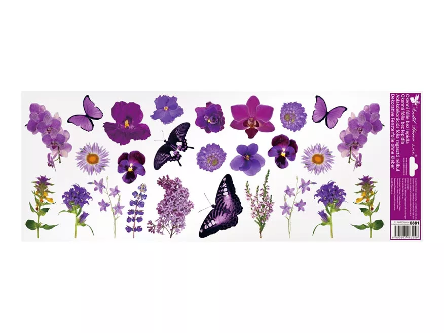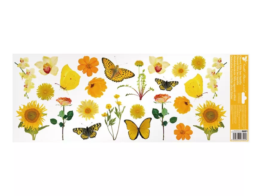 Okenní fólie ANDĚL 6881 60 x 22,5 cm, motýli a květiny. Okenní fólie 60 x 22,5 cm, motýli a květiny. Okenní fólie bez lepidla s různými motivy zvířátek. Fólie má rozměr 60 x 22,5 . Cena za 1 kus, motiv dodáváme dle skladových zásob. V případě zájmu o konkrétní motiv prosím uveďte do poznámky k objednávce. Fólie neobsahuje lepidlo, jednoduše elektrostaticky přilne na čistém okně, zrcadle apod. Snadno se opět sloupne a dá přemístit.