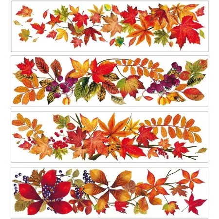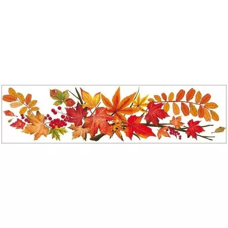 Okenní fólie ANDĚL 881 podzimní listí 64x15cm. Okenní fólie bez lepidla s motivy podzimního listí. Čyři různé motivy, cena za 1 kus, motiv dle skladových zásob. Fólie neobsahuje lepidlo, jednoduše elektrostaticky přilne na čistém okně, zrcadle apod. Snadno se opět sloupne a dá přemístit.