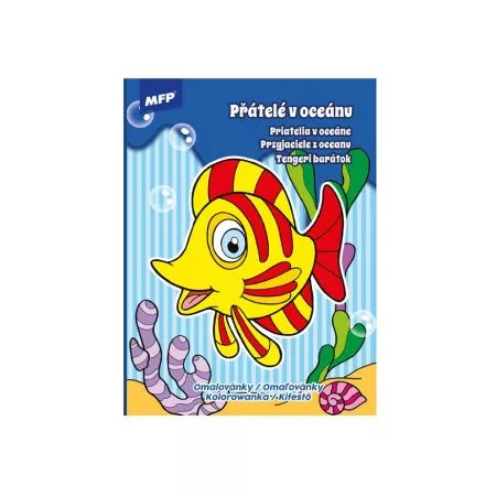 Dětské omalovánky MFP s názvem Přítelé v oceánu. Omalovánky jsou ve formátu A4, obsahují celkem 32 obrázků na vybarvení. Obrázky jsou natisklé na 80g papíře, desky omalovánek jsou na 280g papíře s laminem.