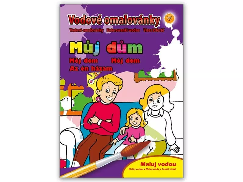 Omalovánky vodové MFP Můj dům 205x290 16s. Vodové omalovánky s 16 obrázky domova. K těmto omalovánkám nepotřebujete barvy, stačí vzít štětec, namočit ho do vody a postupně přetírat jednotlivé barvy obrázků. Děti a stůl tak zůstanou krásně čisté.