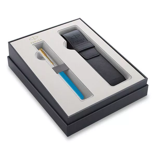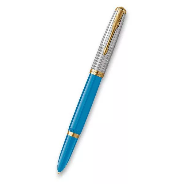 Parker 51 Premium Turquoise GT plnicí pero, hrot F, dárková kazeta s pouzdrem. Plnicí pero Parker 51 Premium Turquoise GT s tělem z ušlechtilé modré pryskyřice a víčkem z nerezové oceli s reliéfní rytinou vyvedenou pomocí laseru. V kombinaci s doplňky pokovenými zlatem. Hrot z ušlechtilé nerezové oceli pokovený zlatem. ...