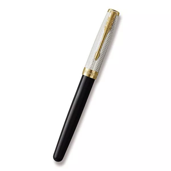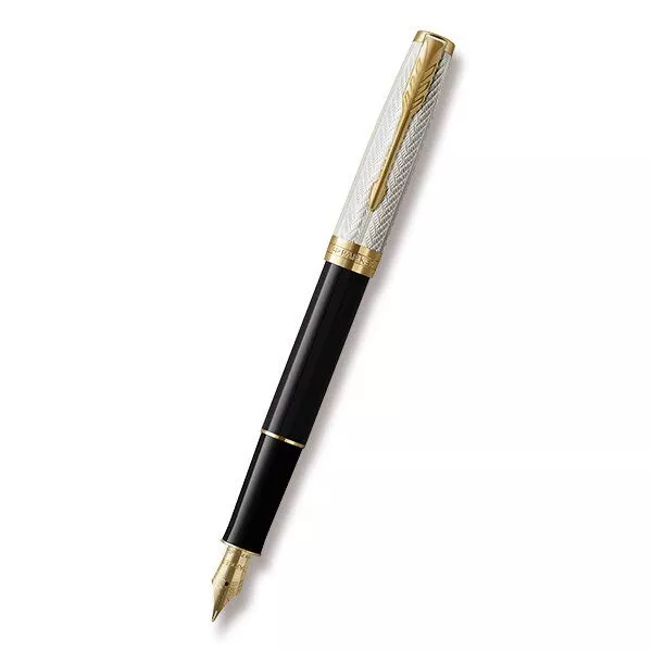 V kombinaci s doplňky pokovenými 23karátovým zlatem. Hrot z 18karátového zlata (ryzost Au 750/1000) s křížovou rytinou., Plnicí pero:, * nasazovací víčko, * standardní konvertor s pístem pro plnění pera inkoustem Quink z lahvičky, * možnost používat i inkoustové bombičky Quink, Vyrobeno ve Francii. Dodáváno s 2 černými bombičkami, v elegantním dárkovém balení., TIP: K plnicímu peru byste mohli využít konvertory Parker s lahvičkovým inkoustem nebo inkoustové bombičky Quink., Speciální edice Sonnet Fougère byla vydána ku příležitosti oslav 25. výročí vzniku řady Sonnet. K oslavě tohoto milníku se Parker rozhodl, pouze na jeden rok, pro znovuuvedení, ikonického vzoru Fougère, který zdobil jeden z prvních Sonnetů uvedených na trh v roce 1994. Vzor Fougère je inspirovaný drobnými detaily listů kapradin. Nadčasová elegance modelu, Sonnet, jeho vytříbený styl i rozmanité povrchové úpravy skvěle navazují na designérskou tradici značky Parker. Sonnet je dokonalým zosobněním všeho, co Parker umí nejlépe –, mistrovského zpracování hrotů z 18karátového zlata, ideálního rozložení hmotnosti pera i pečlivého sestavení jednotlivých, celkem 17 různých dílů. Modelová řada Sonnet je, skutečně nadčasová…a zároveň vždy aktuální., TIP: Jak vyčistit plnicí pero?, JAK SE LIŠÍ HROTY F A M?, F - Slabý hrot (Fine) - Vhodný pro běžné psaní a poznámky. Mírný tlak vytváří jemnou linku. Velmi oblíbený, vhodný pro uživatele se standardním rukopisem., M - Střední hrot (Medium) - Průměrný tlak a šíře linky. Vhodný pro uživatele, kteří mají rádi maličko silnější linku.