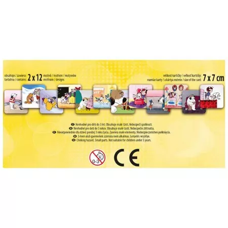 Pexeso Maxi MFP LUX ČT Maxipes Fík + Káťa a Škubánek. Pexeso pro malé děti s motivy oblíbených večerníčků ČT. Hra obsahuje 2x12 vyseklých kartiček pexesa o rozměru 7x7cm. Tloušťka kartonu je 3mm, aby jej malé děti mohly lépe uchopit a otočit. Výborná pomůcka na procvičování paměti dětí formou hry. Věděli jste, že slovo PEXESO vzniklo souslovím slov PEKELNĚ SE SOUSTŘEĎ? Návod ke hře pexeso: Pexeso mohou hrát nejméně dva hráči. Všechny rozstříhané kartičky se zamíchají a rozloží obrázkem dolů. Nesmí se při tom dívat na obrázek. Hráči si určí pořadí hry. Hráč otočí dvě libovolné kartičky tak, aby si i ostatní spoluhráči mohli obrázky a jejich umístění zapamatovat. Pokud nemají kartičky stejné obrázky, otočí je a vrátí na původní místo. Pokračuje další hráč, který je na řadě. Jestliže objeví stejné obrázky, získává bod a obě kartičky vyřadí ze hry. Pokračuje do té chvíle, kdy otočí dva různé obrázky. Vyhrává hráč, který získá více bodů. Nevhodné pro děti do 3 let, nebezpečí vdechnutí a spolknutí malých částic.