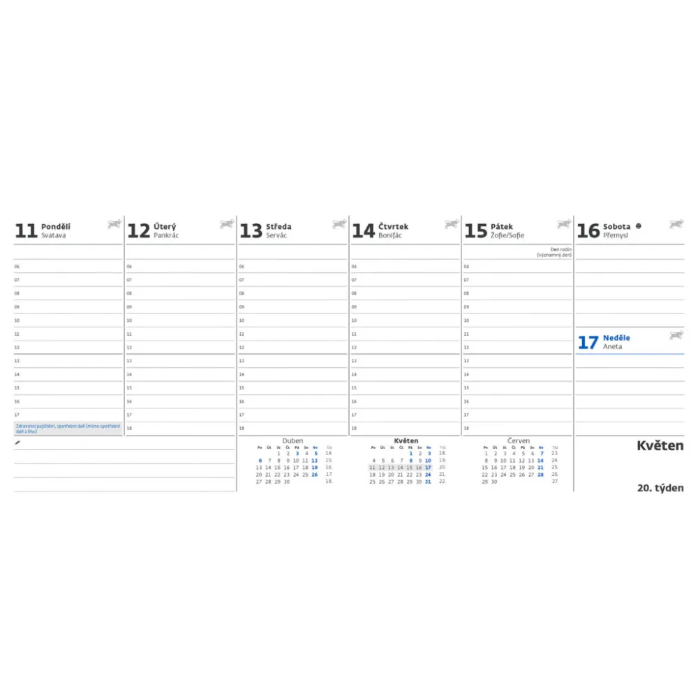 Formát kalendáře: 30,1 x 13,5 cm