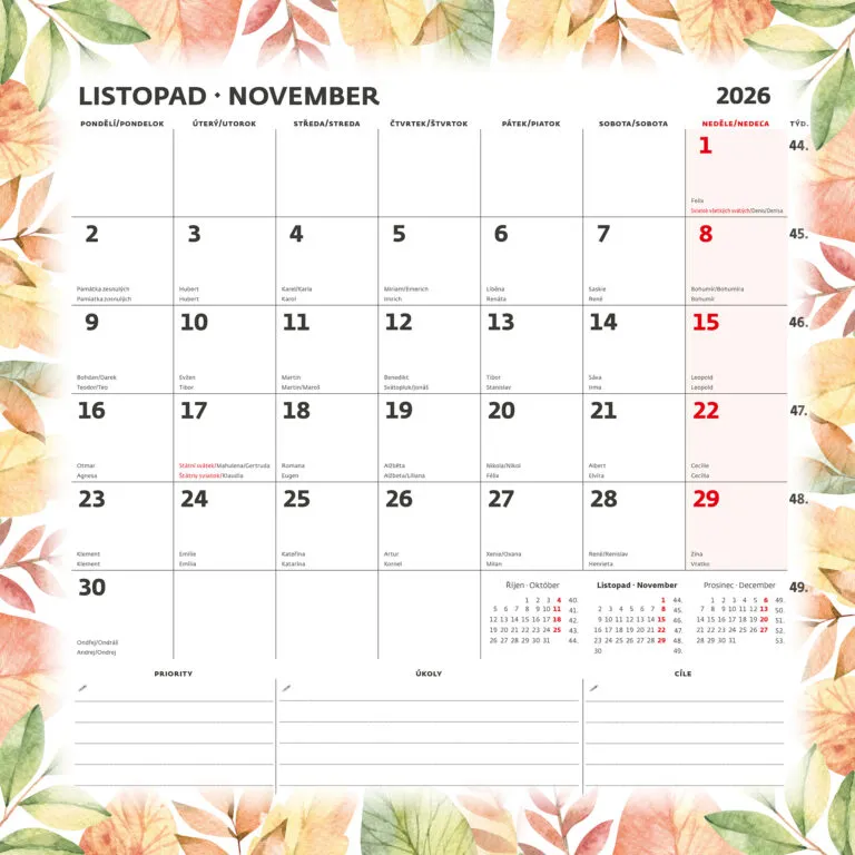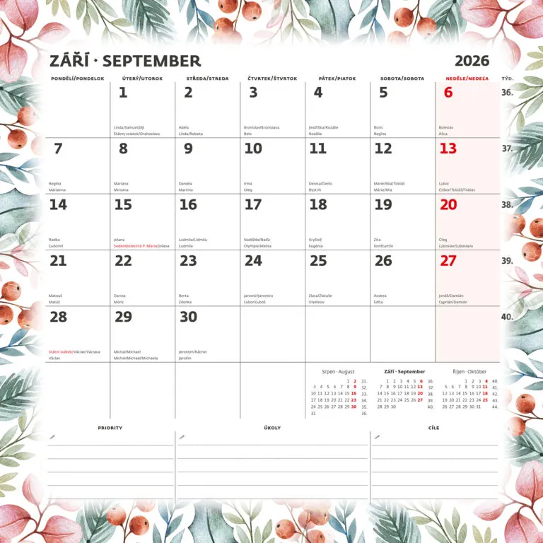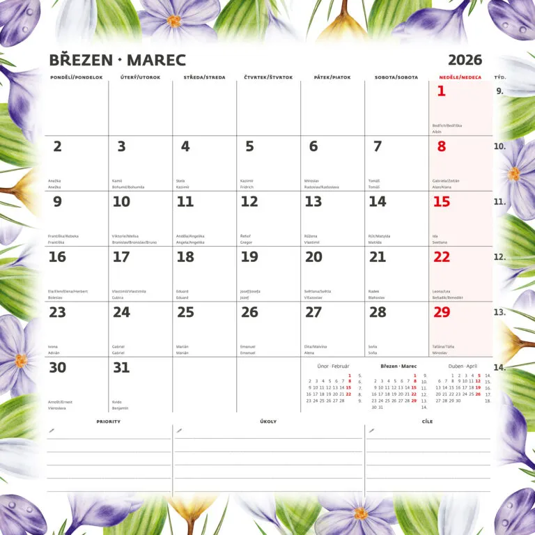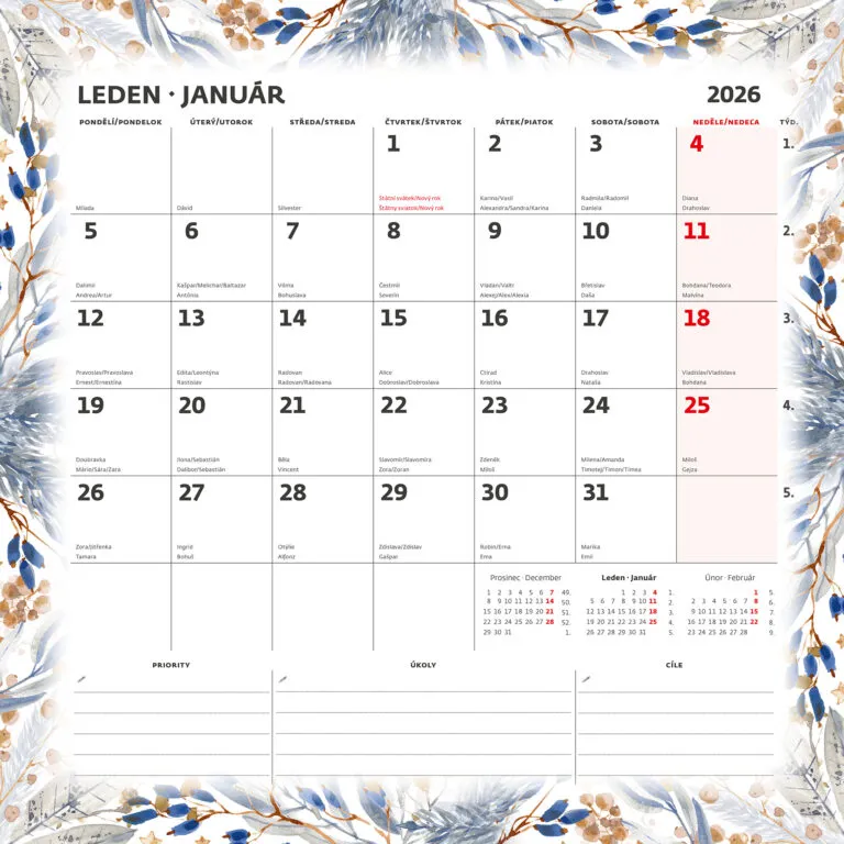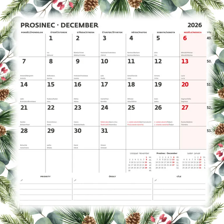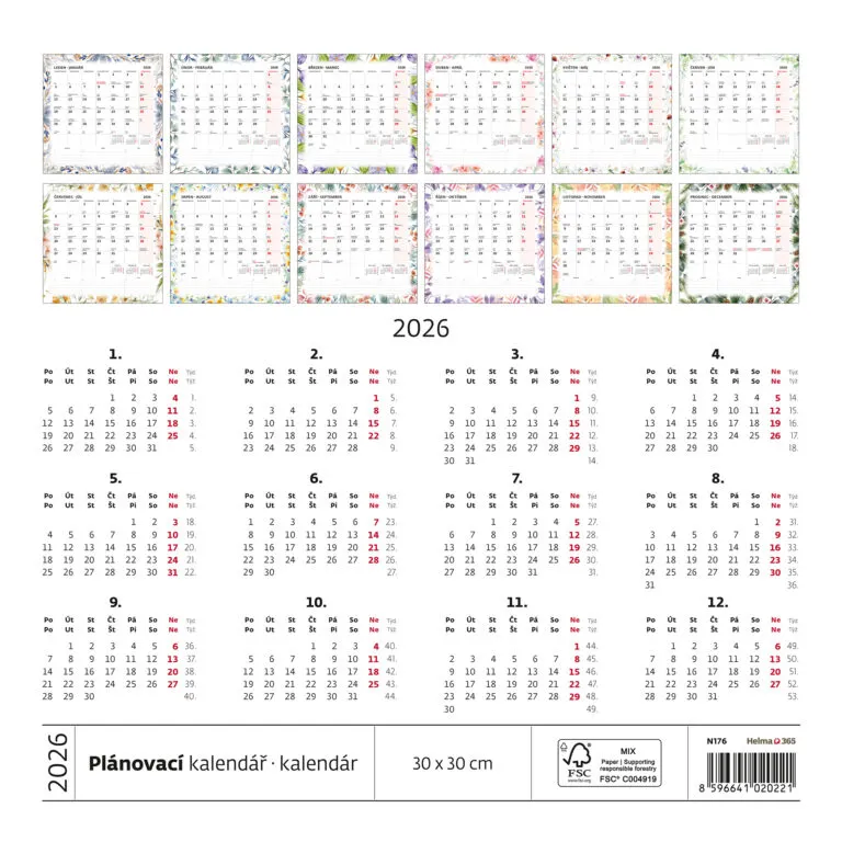 Prostor pro přítisk: 30 x 7 cmFormát kalendáře: 30 x 30 cm