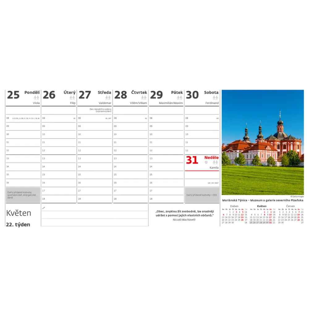 + daně, roční období, znamení zvěrokruhu, citáty, EU svátky, 3měsíční přehledFormát kalendáře: 30,1 x 15 cm