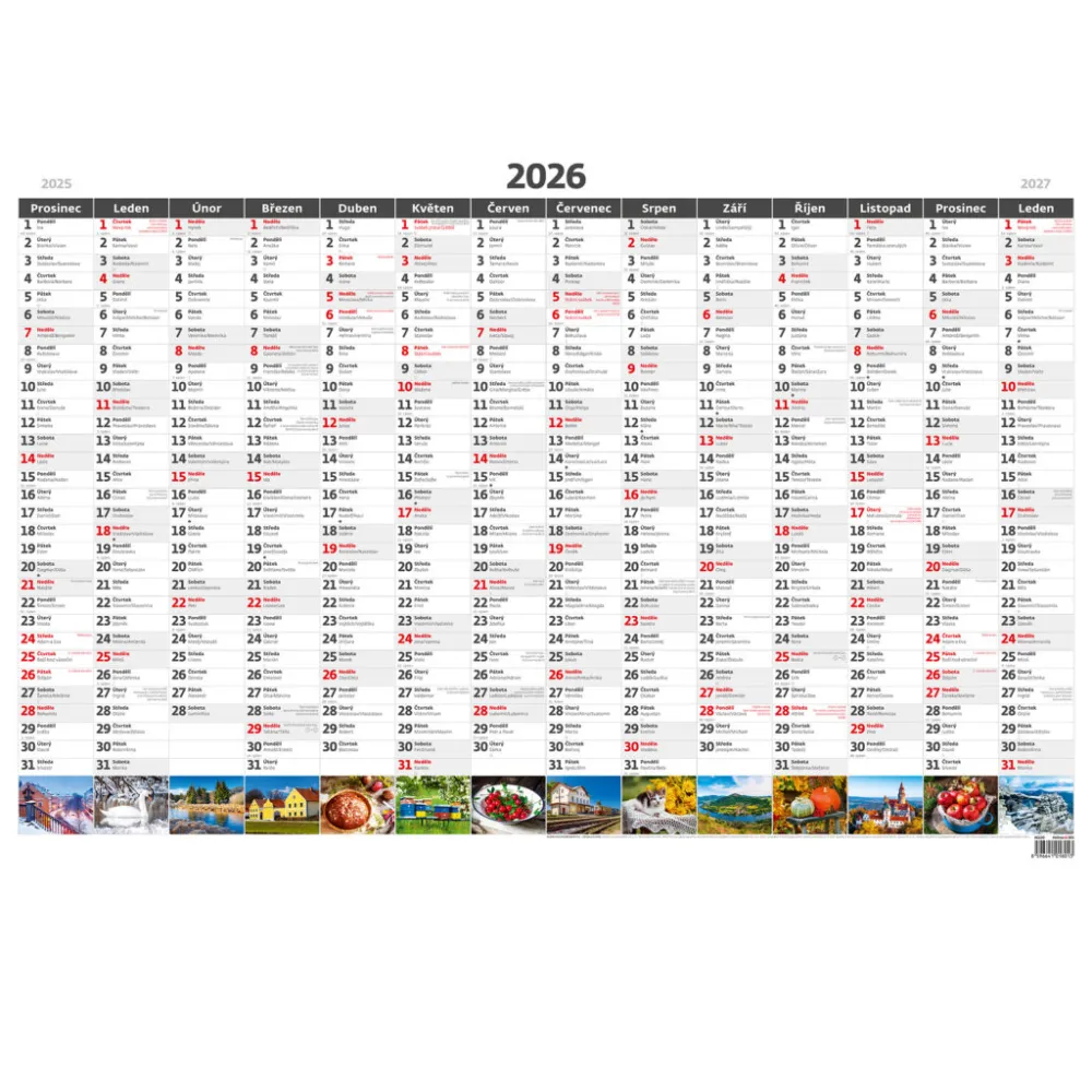 Formát kalendáře: 88 x 64 cm Kalendárium: české roční jmenné Rozsah: 1 list Prostor pro přítisk: 88 x 7 cmFormát kalendáře: 88 x 64 cm Kalendárium: české roční jmenné Rozsah: 1 list Prostor pro přítisk: 88 x 7 cmVlastnosti kalendáře: