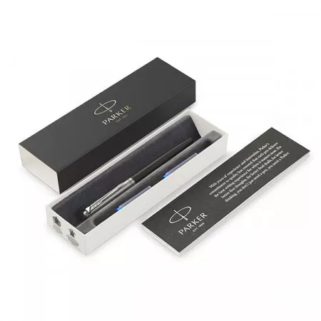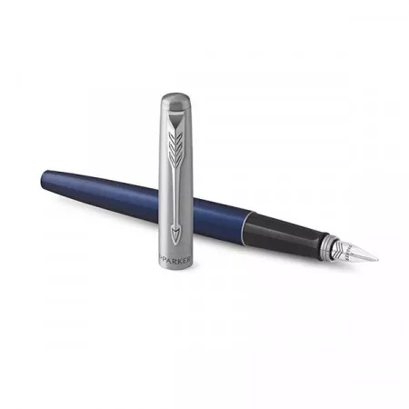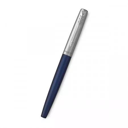 Plnicí pero Parker Jotter Blue CT, hrot M. Lakované tělo z broušené nerezové oceli a vrchní část z broušené nerezové oceli. V kombinaci s doplňky z nerezové oceli pokovenými chromem, s leštěnou úpravou.
