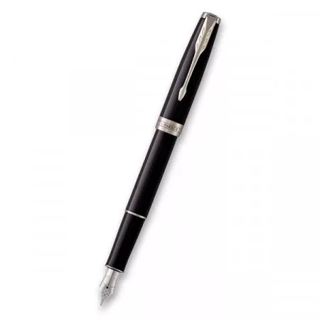 Plnicí pero Parker Sonnet Black CT, hrot M. Černě lakované tělo a víčko. V kombinaci s doplňky pokovenými palladiem. Hrot z nerezové oceli s křížovou rytinou.