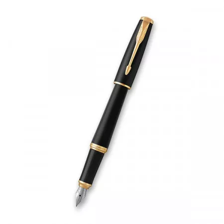 Plnicí pero Parker Urban Muted Black GT, hrot M. Mosazné tělo a víčko s matnou lakovanou povrchovou úpravou, černý plastový úchop. V kombinaci s doplňky pokovenými zlatem. Hrot z ušlechtilé nerezové oceli.
