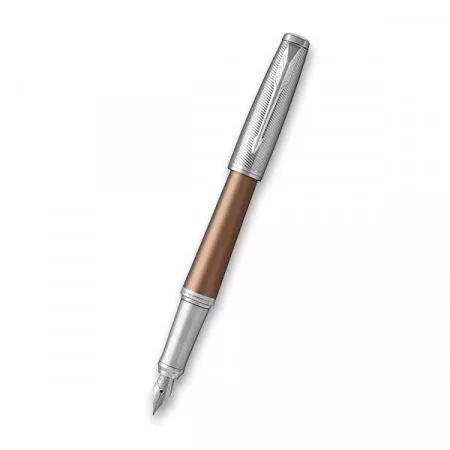 Plnicí pero Parker Urban Premium Orange CT, hrot M. Metalické oranžovo-hnědé tělo z eloxovaného hliníku, upravené pískováním. Mosazné víčko s povrchovou dekorativní strukturou vytvořenou leptáním, pokovené chromem a leštěné. V kombinaci s doplňky pokovenými chromem. Hrot z ušlechtilé nerezové oceli.