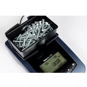 Součástí dodávky je 1/2 kg závaží pro kalibraci, miska a držák pro umístění počítaných předmětů, adaptér