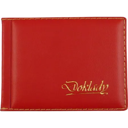 Pouzdro na doklady červené. Slouží k zakládání dokladů (OP, ŘP, kreditní karty, věrností karty, atd.).