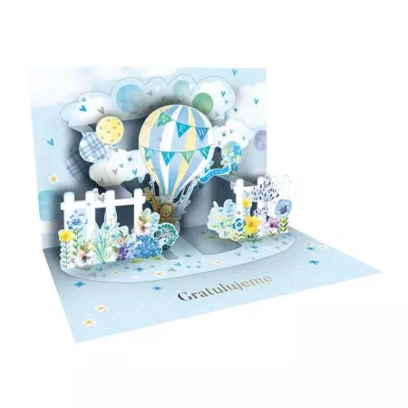 MFP přání k narození miminka CN-710 PRANI_W_C0340. 3D přání k narození miminka - Narození miminka je veliká událost a je třeba ji oslavit. Pošlete novopečené mamince a tatínkovi blahopřání, které je zajisté potěší, a které jim bude připomínat radostné narození jejich miminka. Při otevření přání se zobrazí 3D obrázek. Text na přední straně přání: Ahoj chlapečku Text uvnitř přání: Baby Přání je baleno v sáčku, součástí balení je i dopisní obálka.