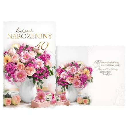 Přání MFP k narozeninám 40 M11-515 H s textem. Přání ke 40. narozeninám s textem. Oslavy narozenin patří k výjimečným a příjemným okamžikům v životě. Potěšte oslavence a spolu s dárkem mu věnujte originální a krásné přáníčko, které mu bude připomínat tuto radostnou událost.