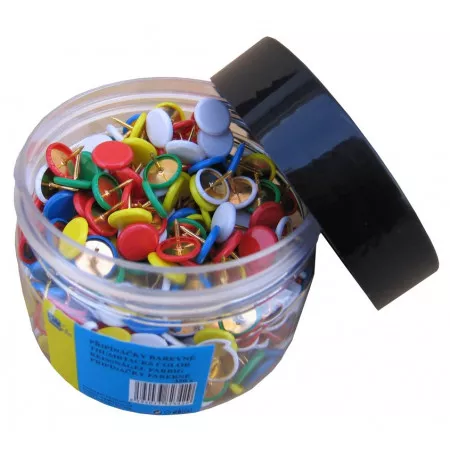 Připínáčky Europen 350 ks barevné potahované. Kvalitní barevné připínáčky pro vaši kancelář vám nabízíme v praktické plastové dóze, která obsahuje 350 kusů připínáčků.