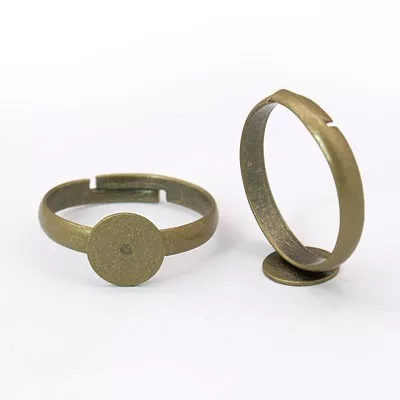 Prsten, polotovar sezákladem pro komponenty. Průměr základny je 8mm, otvor prstenu je flexibilní, ten nejmenší možný je 18mm. Materiál je mosaz v barvě antické bronzové. Neobsahuje nikl, olovo a kadmium.