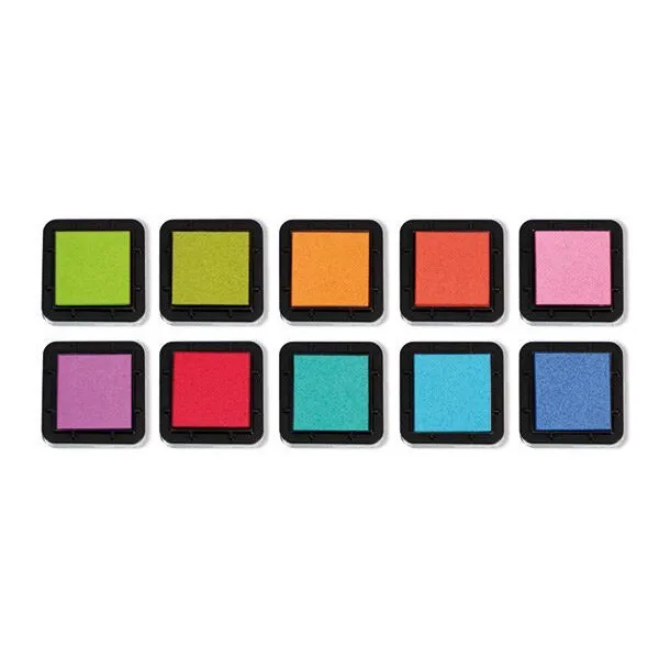 Sada 10 ks barevných polštářků pro razítka StampoKids a StampoScrap. Velikost polštářků je 3×3 cm.