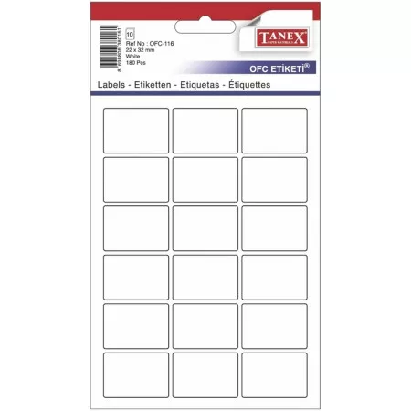 Samolepící etikety v sáčku 22x32 mm, 180 etiket v balíčku OFC-116. Etikety jsou baleny po 10 aršících v sáčku, Cena za 1 balení.