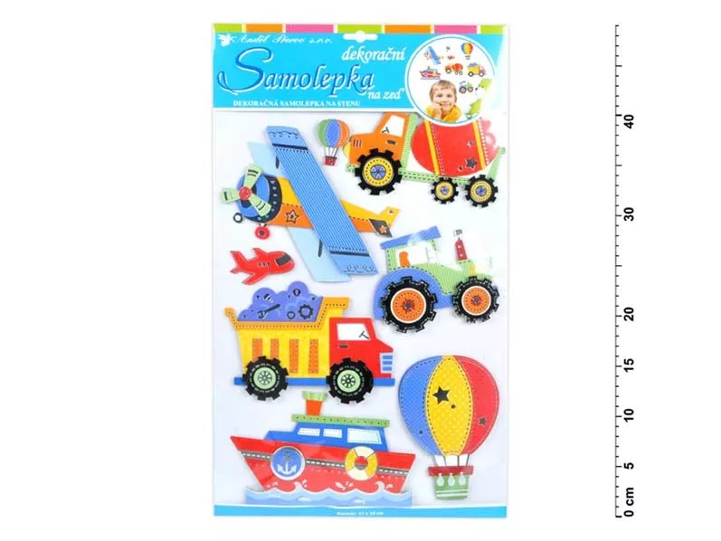 Detailní popis: Samolepky na zeď 10076 z tvrdého papíru 41x29cm dopravní prostředky