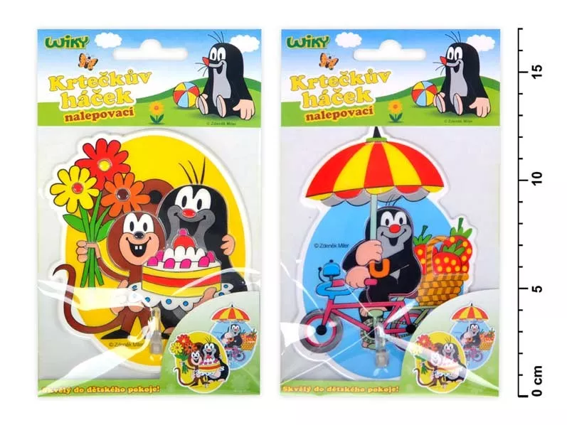 Dětská samolepící dekorace na zeď s obrázky Krtečka a jeho přátel. Samolepka je opatřena háčkem, na které si může například pověsit bundu, nebo v koupelně ručník. Dodáváme ve 2 motivech. Vhodné k nalepení na stěnu, dveře, ale můžete těmito nálepkami vyzdobit třeba i dětský nábytek. Samolepky jsou balené v plastovém sáčku se závěsem.