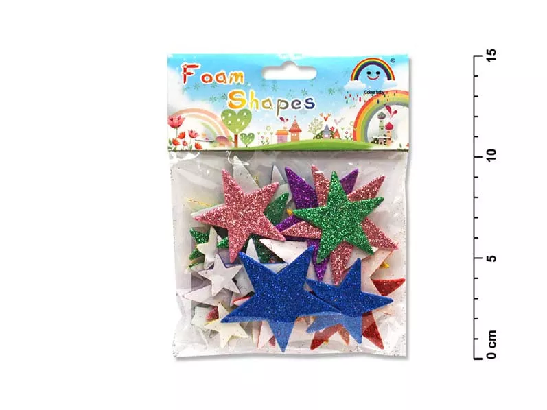 Nalepovací dekorace metalické hvězdy. Různě velké samolepky ve tvaru hvězdičky v různých barvách s metalickými odlesky vhodné jako samostatné dekorace - ideální pro vytváření dalších dekorativních předmětů možno připevnit nalepením.