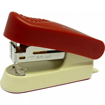 Sešívačka Raion MOD-45M červená 20l 24/6. Plastová sešívačka s kvalitními ocelovými komponenty, zásobník na náhradní spony ve spodní části, mechanismus pro rychlé doplnění, integrovaný rozešívač, indikátor zásoby sponek.